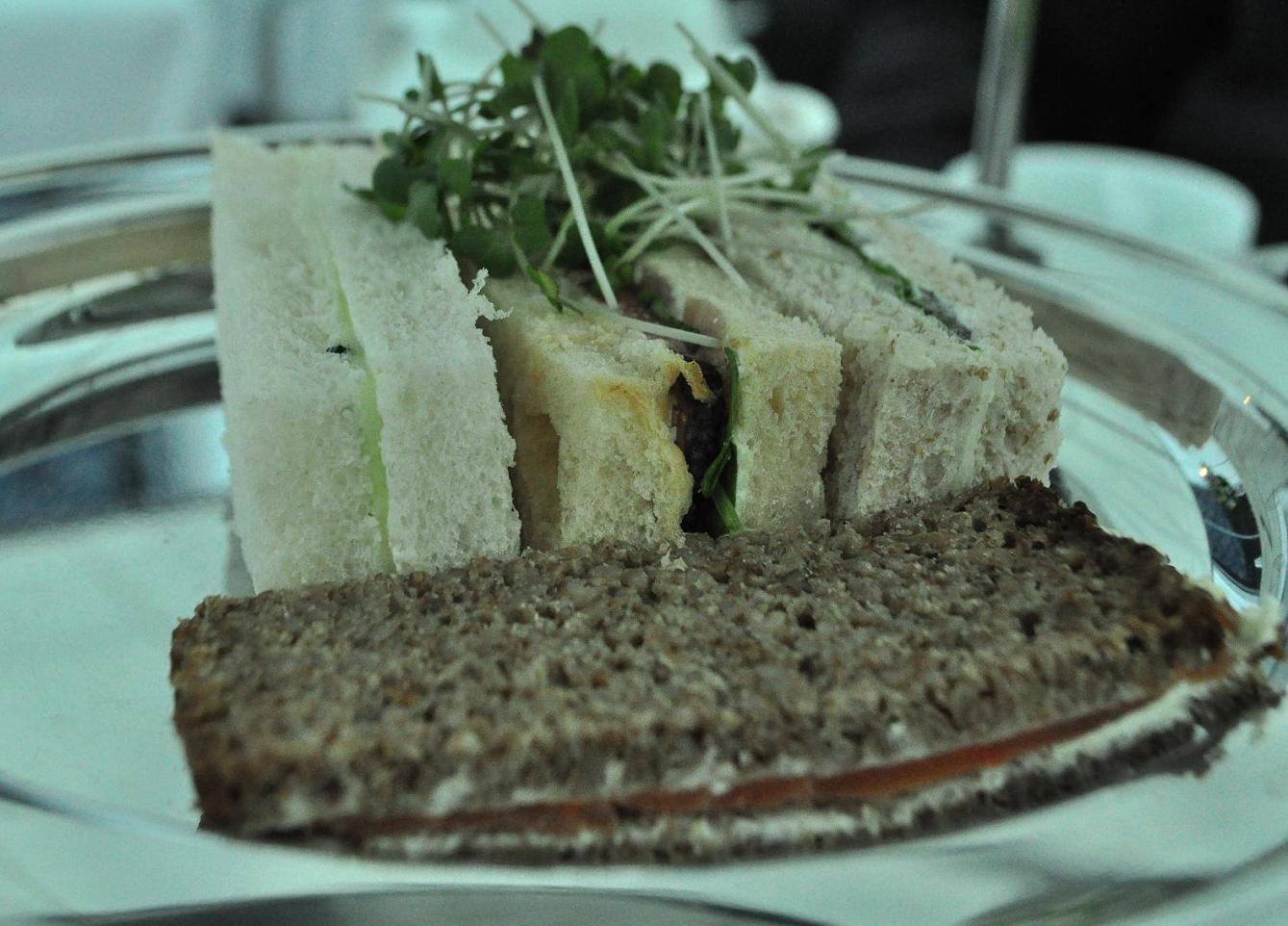 左から、きゅうりとミントとクリームチーズのサンド、生ハムといちじくのサンド、こってりチーズのサンド、手前がスモークサーモンのサンドだったと思います。