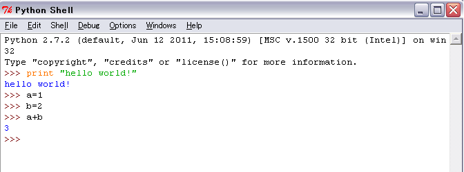 おお。GUIでは関数っぽいやつはオレンジ、文字列は緑、出力は青というふうに色がつくっぽいぞ!