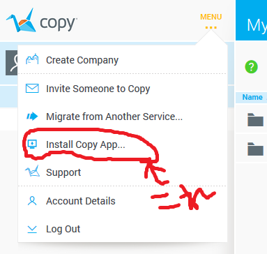 9)同期させたい別のPCにもさっきつくったCopyアカウントでCopyのサイトにログインしてから、Copyをインストール。なんか・・・って書いてあるとこクリックしたらでる。