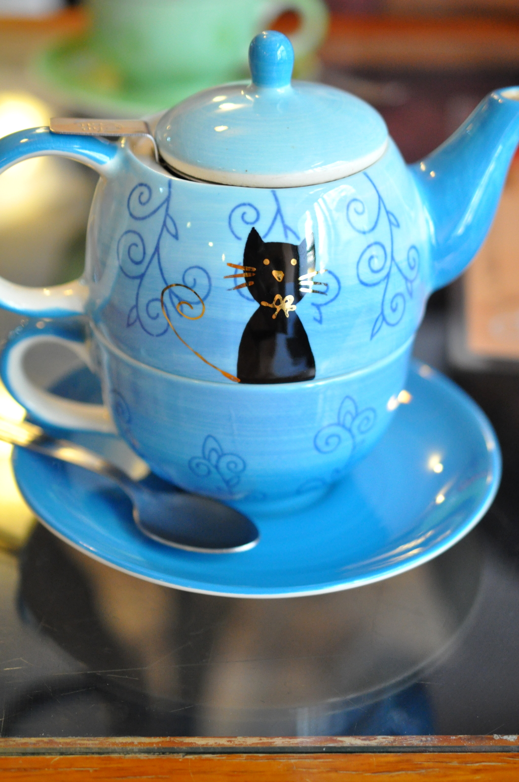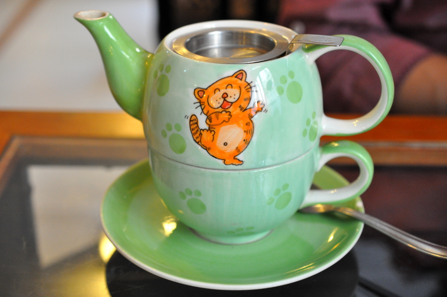 カフェなのでお茶を頼んだのですが、茶器もねこ!