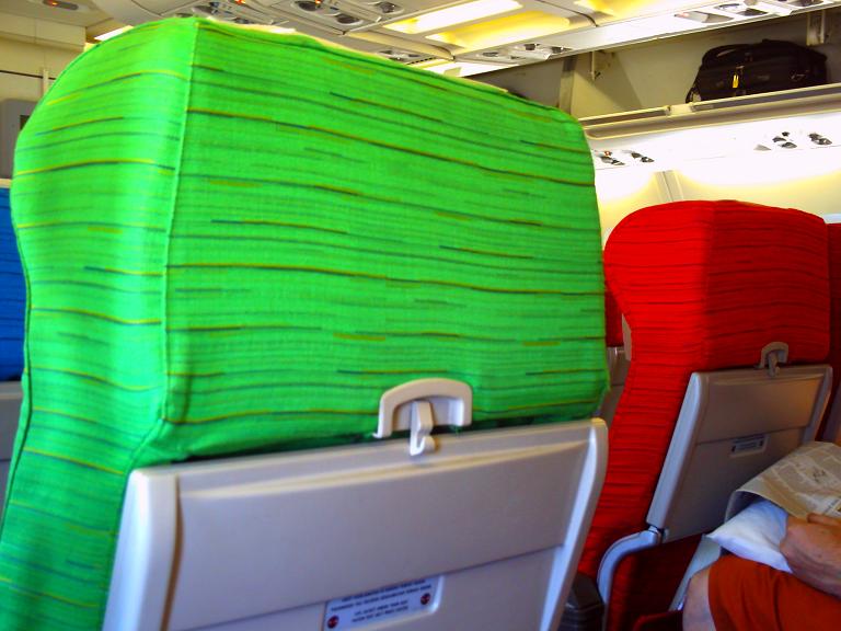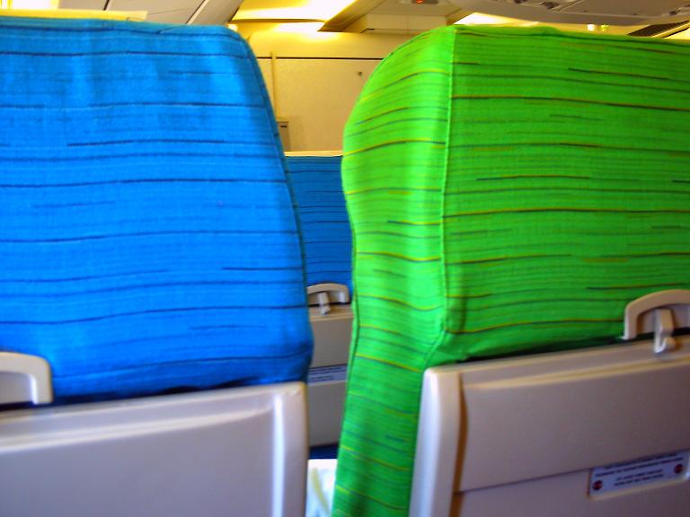 乗り継いだ機体だときゅうきゅう&鈍い色合いのシートだったので、便によってカラフルシートだったりそうでなかったりするみたいですね。