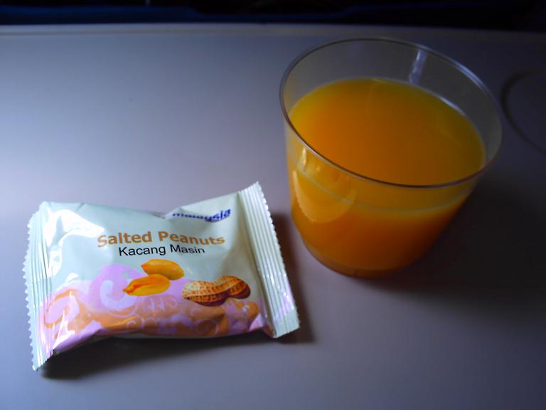 飲み物なしでピーナツはしんどいわー、と思ってたらオレンジジュース出た。
