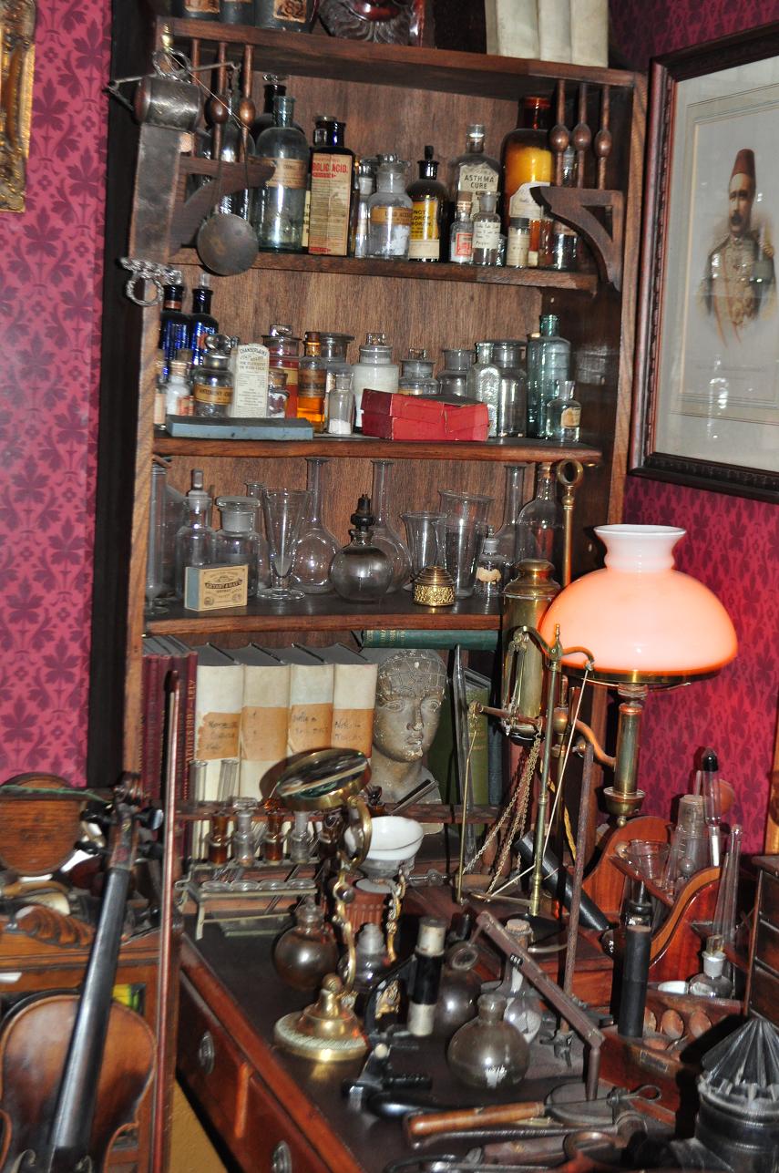 ホームズ博物館では、ホームズたちが下宿に置いていたであろうもの、物語に出てきたものなどが、当時の下宿部屋を再現した部屋にぎっしり並べられています。