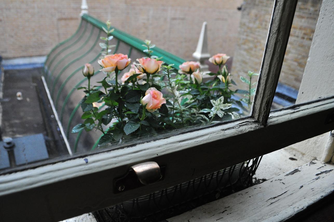 階段の窓には花もあります。