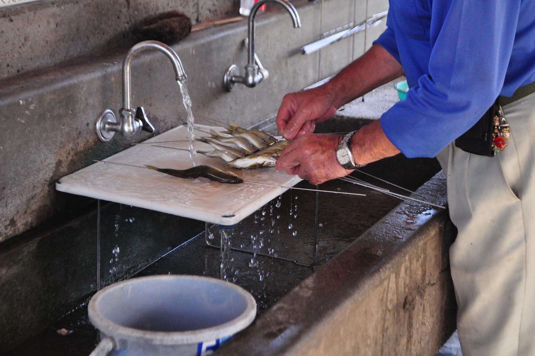 おひるごはんのおかず調達のために、アユつかみどりコーナーへ。