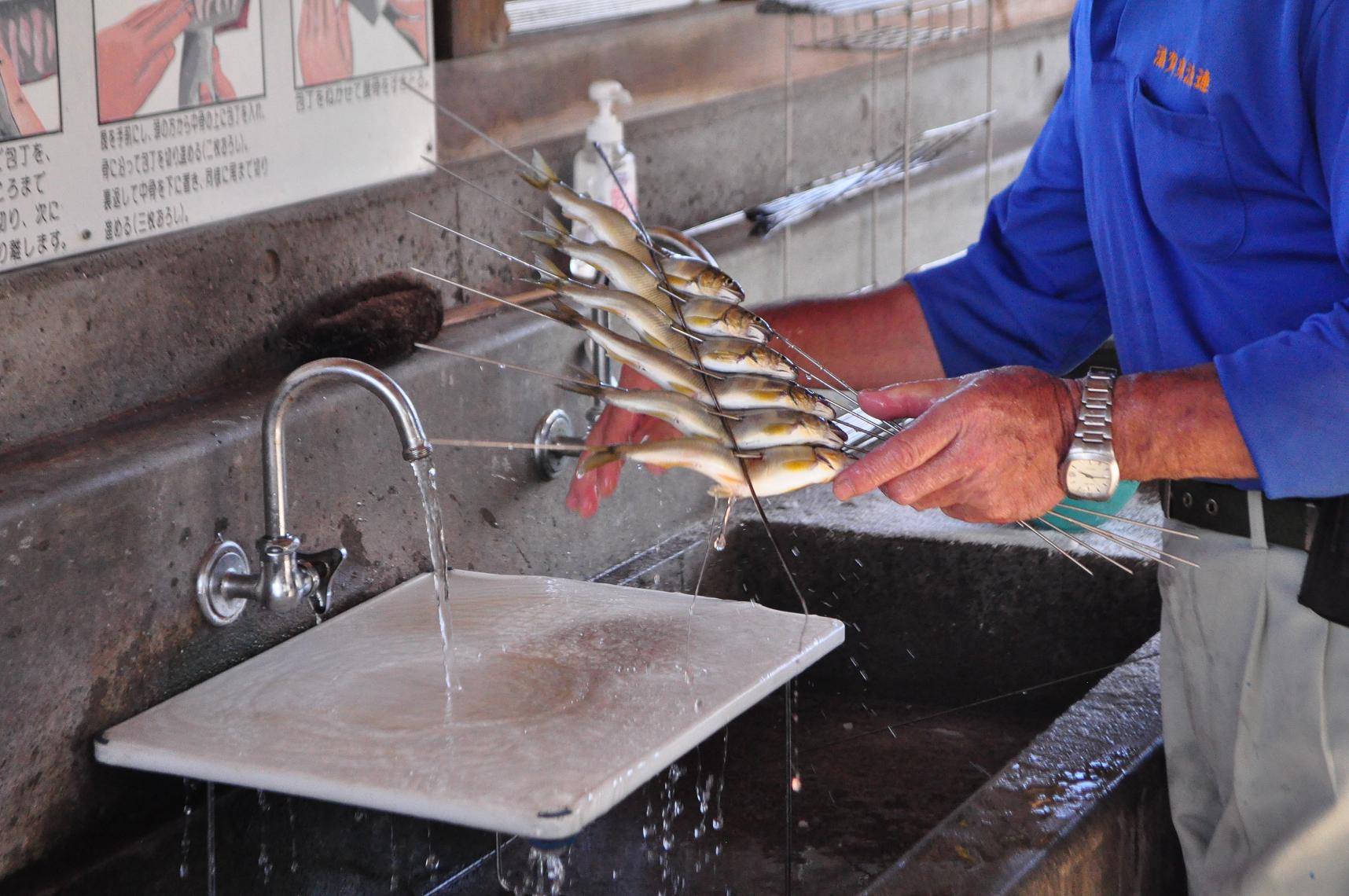 ちなみに、アユは9月末までだそうですが、アユ以外の季節はマス釣りができ、釣ったマスを炭火焼きにしてもらえます。