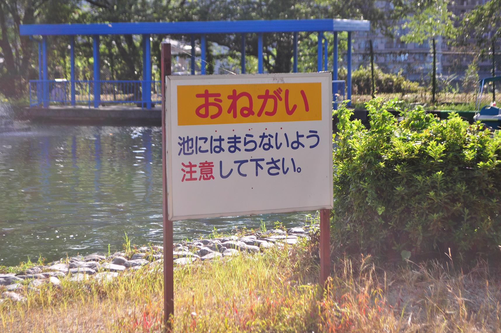 こんな看板もあるので池の近くは注意して歩きましょう。
