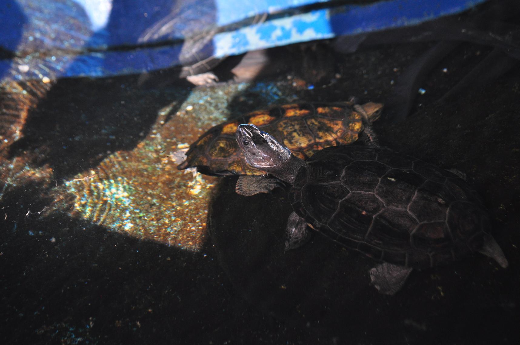 琵琶湖のマスコット、ビワコオオナマズもいたんですが暗いし水槽もこんなだしでろくに写真は撮れませんでした。