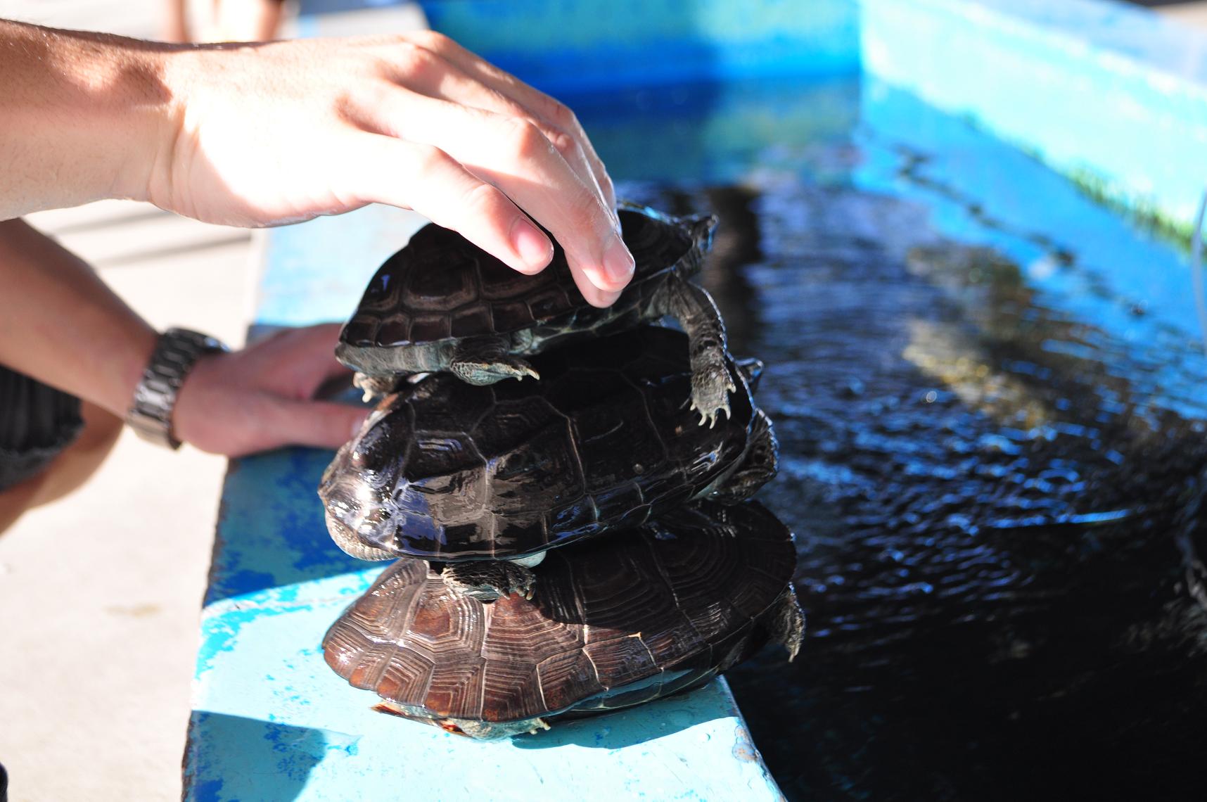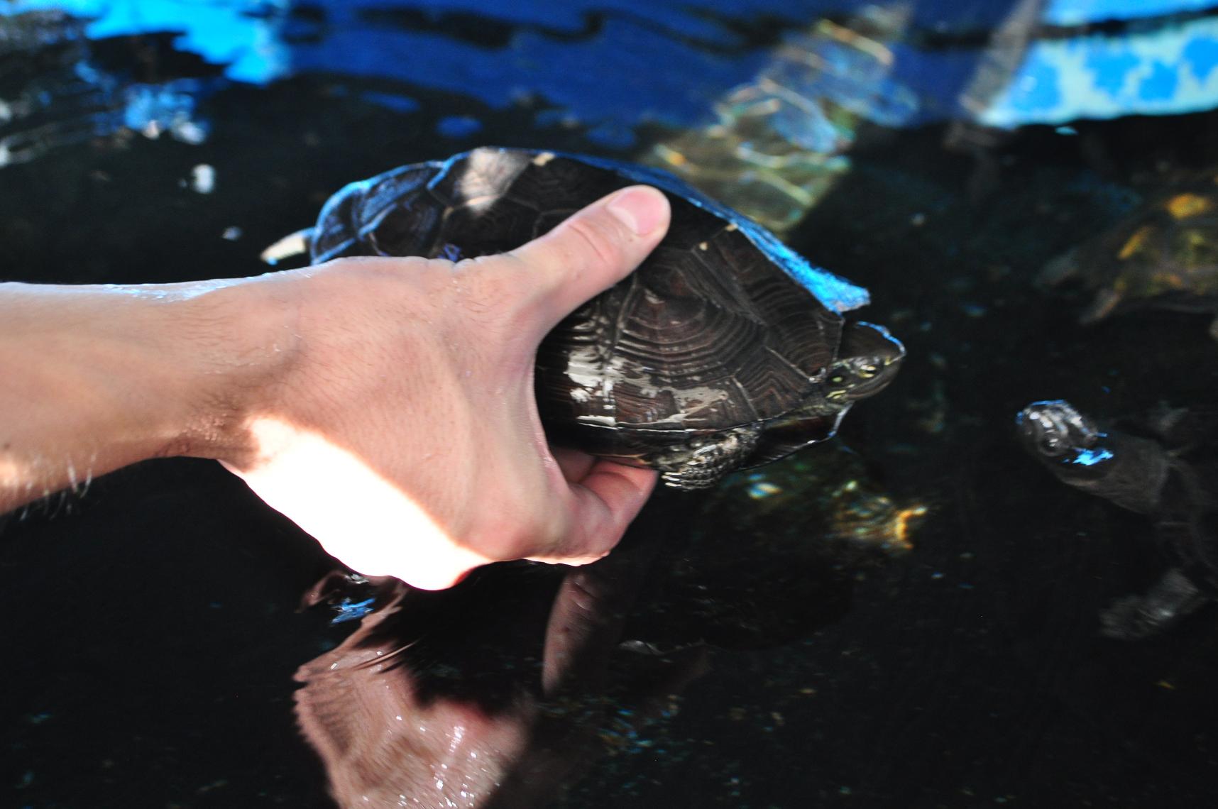 ちなみに、亀やざりがにの水槽の裏には水道&せっけんがあって、ちゃんと手を洗えるようになっています。