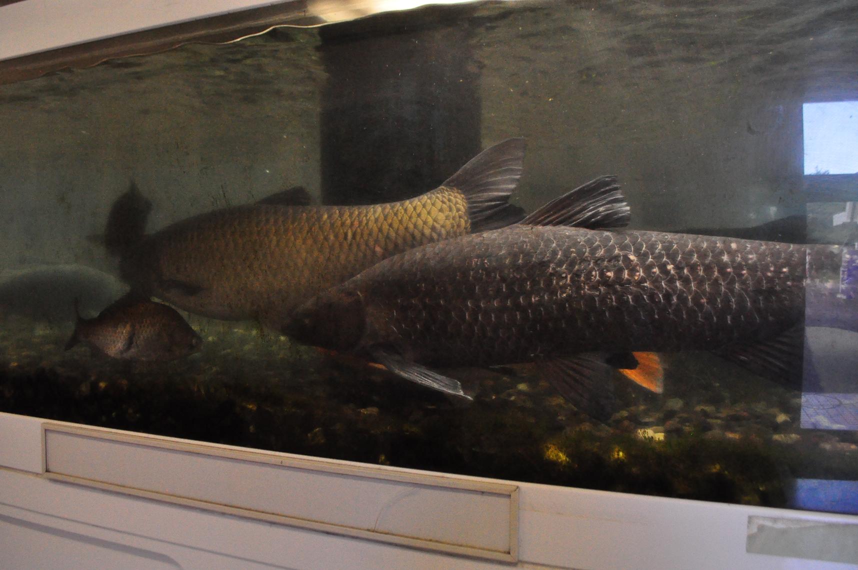 琵琶湖の大型の魚や、琵琶湖特有の魚などが水槽にいます。
