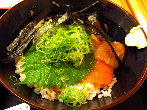 わたしが食べたのは、はまちとたいの醤油漬けととろろごはんのどんぶり、その名も堅田丼(堅田はその漁業組合あるとこの地名らしい)
